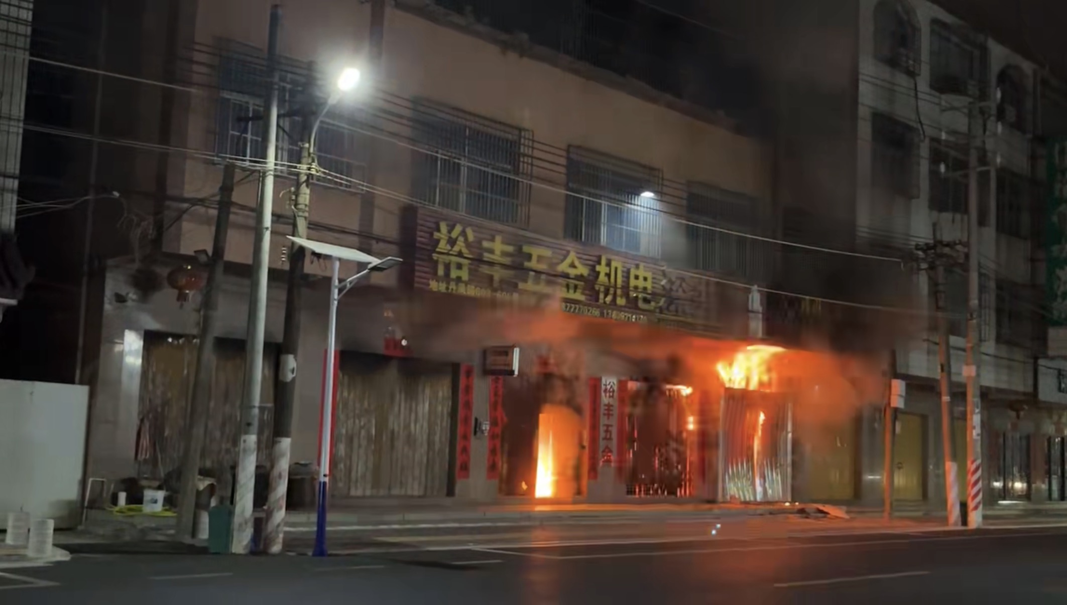 多位目击者向记者提供的火灾视频显示,12月9日21时许,火光从丹凤路的裕丰五金机电工具店铺中冲出,伴随着浓烟和声响,陆续有附近居民和路人跑来,使用路边的消防栓向火场喷水,希望控制火情。