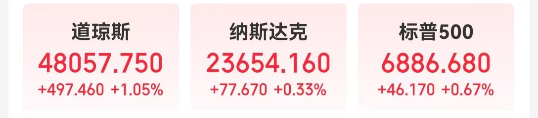 图片来源:视觉中国市场方面。截至当地时间12月10日收盘,美股三大指数集体收涨,道指上涨497.46点,涨幅1.05%;纳指涨0.33%;标普500指数涨0.68%。